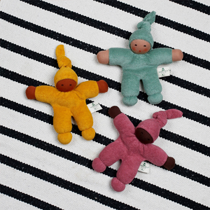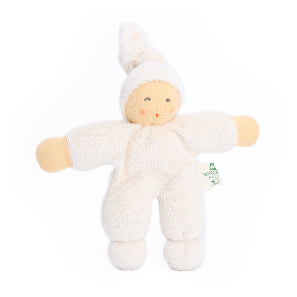 Der niedliche Greifling 'Pimpel' in Salbei von Nanchen ist eine treue Begleiterin für die ersten Abenteuer der Kleinsten. Sie unterstützt die ersten Greifversuche, lädt zum Erkunden ein und schenkt Geborgenheit beim Einschlafen. Aus weichstem Bio-Baumwollstoff in Handarbeit gefertigt, mit Deutscher Bioland Schafschurwolle gefüllt und liebevoll von Hand bemalt, vereint sie natürliche Materialien mit traditioneller Handwerkskunst. Mit ihrem schlichten, zeitlosen Design ist die Nanchen-Puppe nicht nur eine wundervolle Spielgefährtin, sondern auch ein besonders schönes Geschenk zur Geburt.