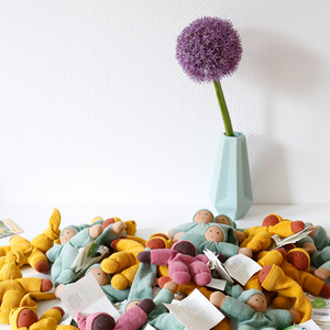 Der niedliche Greifling 'Pimpel' in Salbei von Nanchen ist eine treue Begleiterin für die ersten Abenteuer der Kleinsten. Sie unterstützt die ersten Greifversuche, lädt zum Erkunden ein und schenkt Geborgenheit beim Einschlafen. Aus weichstem Bio-Baumwollstoff in Handarbeit gefertigt, mit Deutscher Bioland Schafschurwolle gefüllt und liebevoll von Hand bemalt, vereint sie natürliche Materialien mit traditioneller Handwerkskunst. Mit ihrem schlichten, zeitlosen Design ist die Nanchen-Puppe nicht nur eine wundervolle Spielgefährtin, sondern auch ein besonders schönes Geschenk zur Geburt.