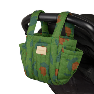 Der hübsche Kinderwagen Organizer 'Hyde Park' von Nobodinoz mit grünem Blümchenmuster passt an alle Kinderwagen. Der leichte und praktische Organizer besteht aus Bio-Baumwoll-Twill und ist ein Must-have für Spaziergänge mit deinem Baby. Dank Klettverschluss kannst du den Organizer ganz einfach am Kinderwagen oder Buggy befestigen.