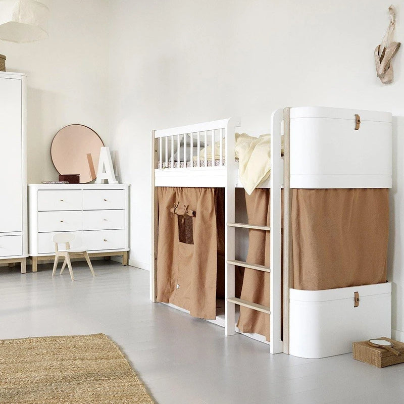 Das Wood Mini+ halbhohes Hochbett wird auf der Grundlage des klassischen Handwerks entworfen und in durchdachter Serienproduktion hergestellt. Es wird aus massiver Eiche und Birke hergestellt und das Design definiert sich durch seine durchdachten, präzise ausgeführten Lösungen. Das halbhohes Hochbett wird den strengen Sicherheits- und Gesundheitsregeln der EU gerecht. Bei Oliver Furniture gehen Ethik und Ästhetik Hand in Hand.