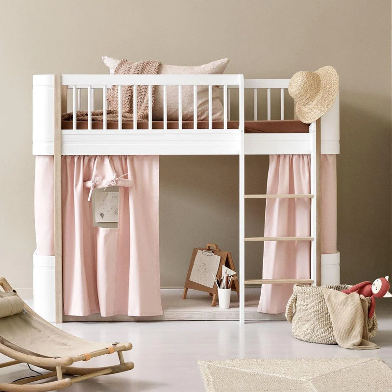 Das Oliver Furniture Wood Mini+ halbhohe Hochbett ist eine Qualitätslösung für kleinere Kinderzimmer. Mit den großzügigen Maßen eines Juniorbetts, aber gleichzeitig kleiner Statur, fügt es sich ideal in Räume, in denen ein Hochbett in Standardgröße zu dominierend wirkt. Das halbhohe Hochbett bietet einen gemütlichen Schlafplatz für junge Schulkinder. Darüber hinaus bietet das Design die Möglichkeit den Platz darunter, wie eine kleine Lounge, zum gemeinsamen Spielen mit Freunden zu nutzen. Ist das Kind letztlich aus dem Bett herausgewachsen, kann man es durch Zukauf eines Sets von kurzen Pfosten umbauen, und dann mit schönen Kissen ausgestattet als gemütliches Tagesbett oder kleines Sofa in einer Wohnzimmerecke oder einem breiten Flur als stilvolles Element weiter benutzen.