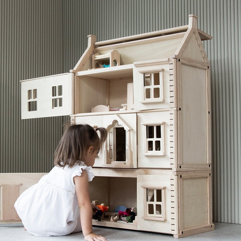 Traumhaftes, traditionelles Puppenhaus aus Holz von Plantoys im viktorianischen Stil. Dieses wunderschöne Puppenhaus ist gemacht um an viele Generationen weitergegeben werden zu können. Ein mega Highlight im Kinderzimmer!