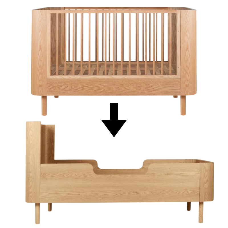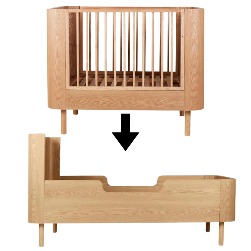 Das wunderschöne Quax Babybett 'Yume' in warmer Eschenoptik schenkt dem Kinderzimmer eine harmonische Atmosphäre. Das Bett passt sich an die Bedürfnisse deines Kindes an: Der Lattenlost lässt sich auf verschiedene Höhen anpassen und mit einem ein paar Handgriffen und dem Junior-Kit kann es in ein Juniorbett verwandelt werden. So schenkt es deinem Kind bis zu einem Alter von 10 Jahren einen Ort der Ruhe, wo Träume wahr werden.