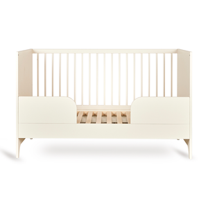 Das wunderschöne Babybett 'Tsugi' in Butter von Quax begleitet dein Kleines vom Babyalter bis ins Kinderalter.
