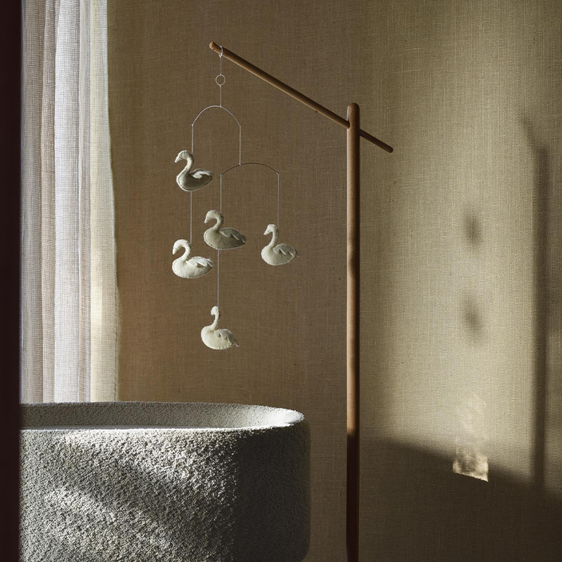 Mit dem Mobile-Ständer aus Holz von Quax schwebt das Mobile sanft über dem Baby- oder Kinderbett, dem Wickeltisch oder Laufgitter.