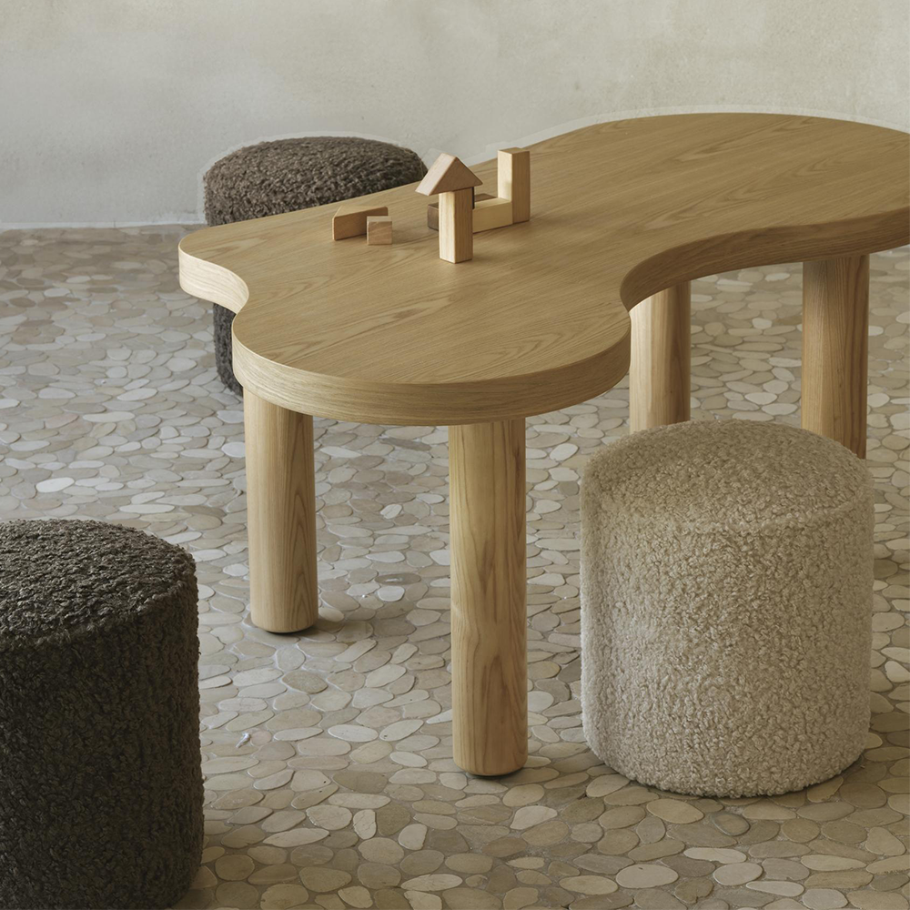 Der wunderschöne Pouf 'Modu' von Quax ist die ideale Sitzgelegenheit fürs Kinderzimmer. Mit seinem weichen, gepolsterten Teddy-Bezug lädt er zum gemütlichen Sitzen und Spielen ein. Seine Höhe ist perfekt auf den Modu Tisch von Quax abgestimmt, sodass Kinder bequem malen, basteln oder lesen können. Dank der sanften Rundungen und dem Verzicht auf scharfe Kanten bietet der Pouf nicht nur höchsten Komfort, sondern ist auch sicher für Kinder.