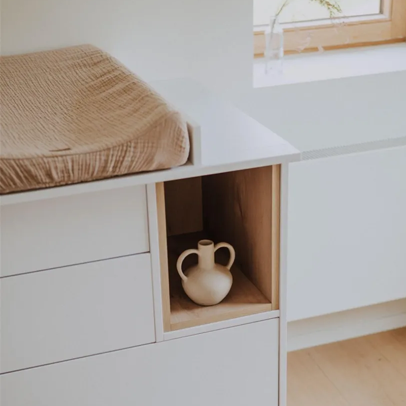 Mit dem Wickelkissen'Wave' in Clay von Quax schaffst du eine bequeme Wickelumgebung für dein Kleines.