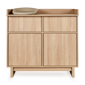 Die Wickelkommode'Kyo' von Quaxvereint funktionales Design mit stilvoller Ästhetik und schafft mit ihrem warmen Holzton eine Atmosphäre von Ruhe. Die Kommode bietet dir eine grosszügige Fläche, um dein Kleines bequem zu wickeln. Hinter zwei Türen und in zwei geräumigen Schubladen, die sich dank des geräuschlosen Push-to-Open-Systems mühelos öffnen lassen, finden Wickelutensilien, Kleidung und Spielsachen ihren Platz. So hast du alles, was du für die Pflege deines Kleinen benötigst, immer griffbereit.Wenn die Wickelauflagenicht mehr benötigt wird, lässt sie sich leicht wieder entfernen.So begleitet dich die Kommode später im Kinder-, Jugend- oder im Elternschlafzimmer als stilvolle Aufbewahrung für Kleidung, Spielsachen oder andere schöne Dinge.