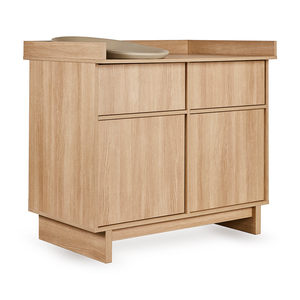 Die stilvolle Wickelkommode 'Kyo' in Honey Ash von Quax bietet dir eine grosszügige Wickelfläche und viel Stauraum für Pflegeutensilien und Kleidung.