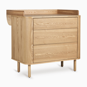 Die stilvolle Wickelkommode 'Yume' von Quax in warmer Eschenoptik mit abnehmbarer Wickelauflage schenkt dir und deinem Baby einen bequemen und harmonischen Ort zum Wickeln. Sie besitzt 3 grosszügige Schubladenmit Push-System, die genug Platz für Babyutensilien, Spielsachen und Kleidung bieten und sich mühelos und sicher öffnen und schliessen lassen. Sobald die Wickelauflage nicht mehr gebraucht wird, kann sie problemlos wieder entfernt werden. So begleitet die Yume Kommode dein Kind und Familie für eine lange Zeit.