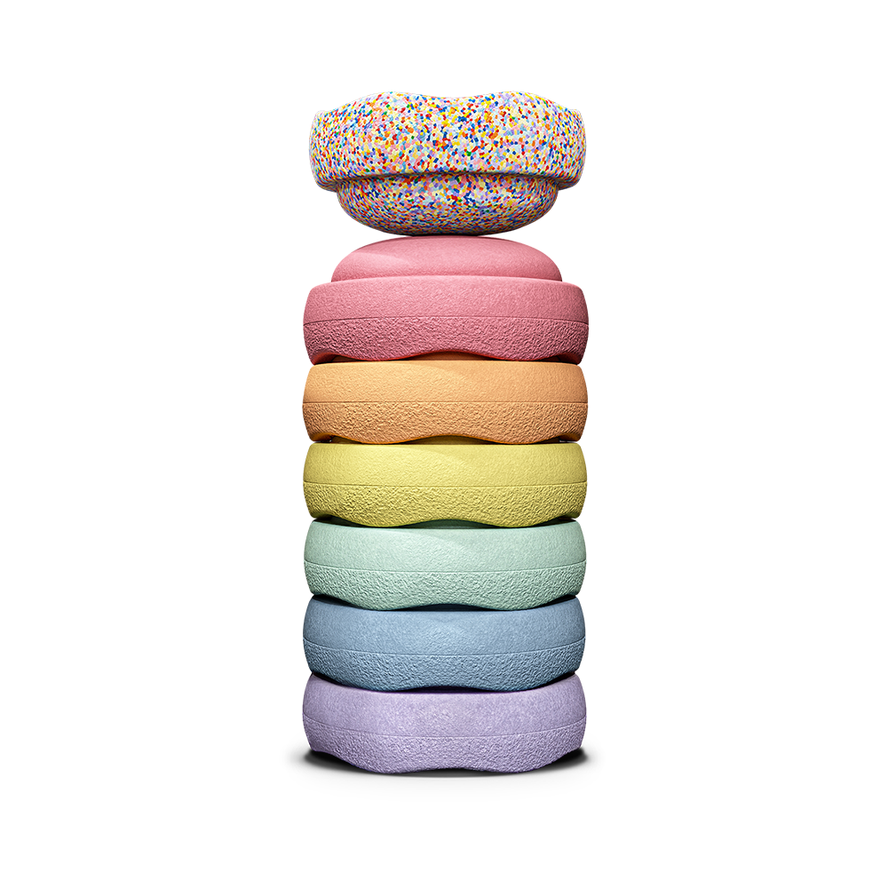 Das Grimms x Stapelstein Set Pastel verbindet die fantasiereichen Bau- und Spielwelt von Grimms mit der vielseitigen Bewegungswelt von Stapelsteine. Das Set besteht aus 6 Stapelsteinen, Kullerscheiben und Holzkugeln. Die Kullerscheiben lassen sich in die Stapelsteine setzen und dann kann mit den 3 Holzkugeln nach Lust und Laune umhergekullert werden. Mit den Kullerscheiben und den Stapelsteinen können aber auch Türme gebaut und Fantasiewelten erschafft werden. Durch die ganz kleinen Öffnungen der Scheiben lassen sich Fäden ziehen oder sie können mit Blumen geschmückt werden. So bietet das Spielset unendlich viele Spielmöglichkeiten für Kinder verschiedener Altersstufen.