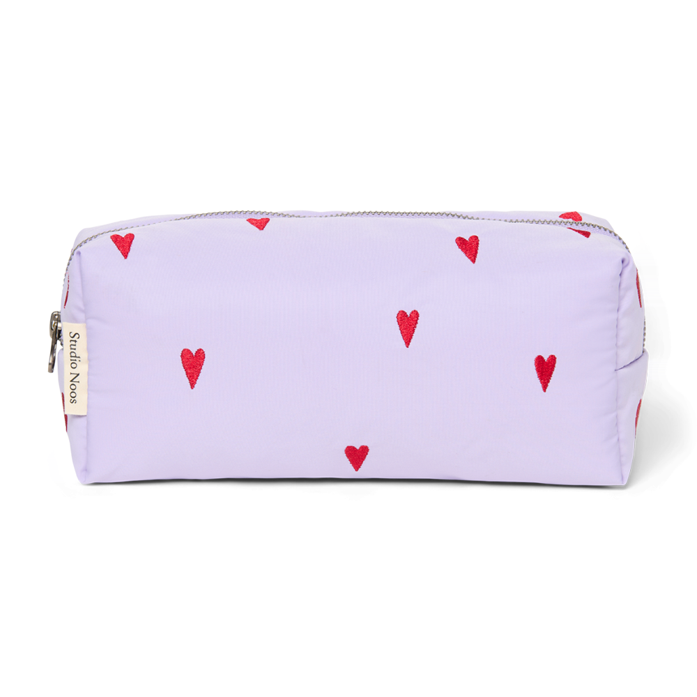 Mit dem stilvollen und praktischen Necessaire 'Pouch' in Lila mit Herzchenstickerei von der Marke Studio Noos hast du alle wichtigen Pflegeprodukte für dich und dein Kleines immer dabei.