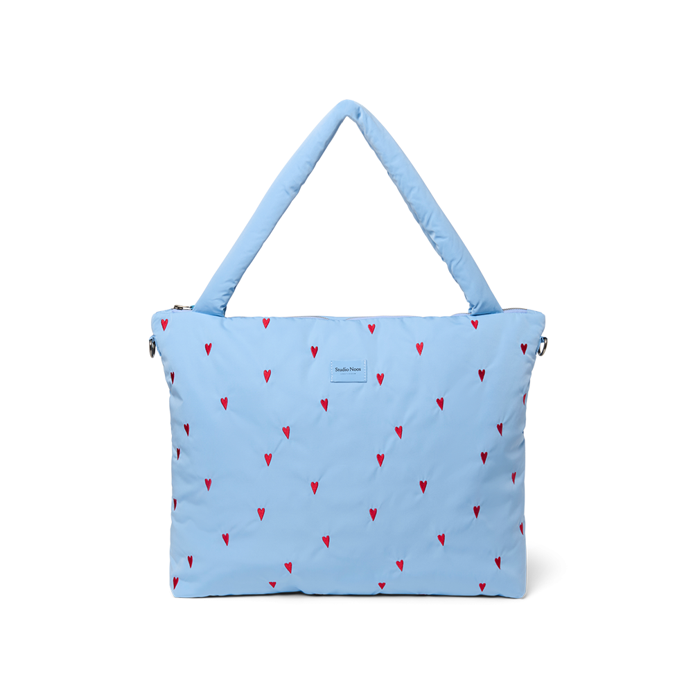 Mit dem hübschen Necessaire in Lila mit zarter Herzchen-Stickerei von Studio Noos hast du alle wichtigen Pflegeprodukte für dich und dein Kleines jederzeit griffbereit.