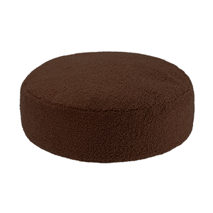 Der runde Ottoman in der Farbe Warm Hazel aus weichem Teddy-Stoff von Wigiwama lädt zum Entspannen und Erholen ein.